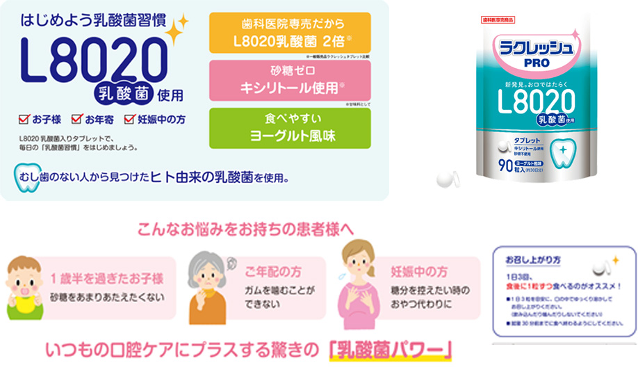 通常の歯科治療やメインテナンスに加えて、善玉菌(L.ロイテリ菌)を摂取するだけで、お口や体が健康になっていきます。