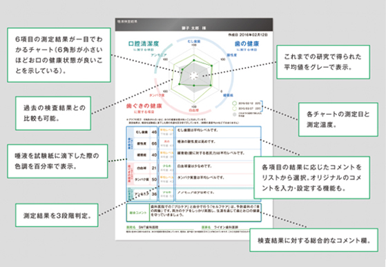 の6項目を測定・分析し、今の口腔内環境を確認することができます。