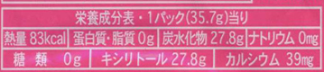 右の成分表でのキシリトール含有率は、27.8÷27.8×100=100%となります