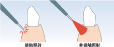 インパルスデンタルレーザーは、水分に作用を阻害されることが少なく接触法および
